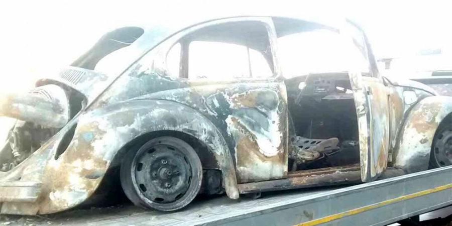 Cortocircuito se apodera de automóvil en carretera.- En Cholul, Yucatán, un cortocircuito acabó con un automóvil marca Volkswagen en plena carretera.