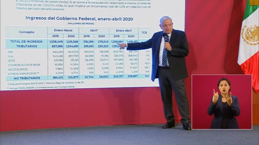 De igual forma, el mandatario federal enfatizó que pese a la contingencia sanitaria, la recaudación hasta abril tendrá un aumento en términos reales lo cual será benéfico para la hacienda pública.
