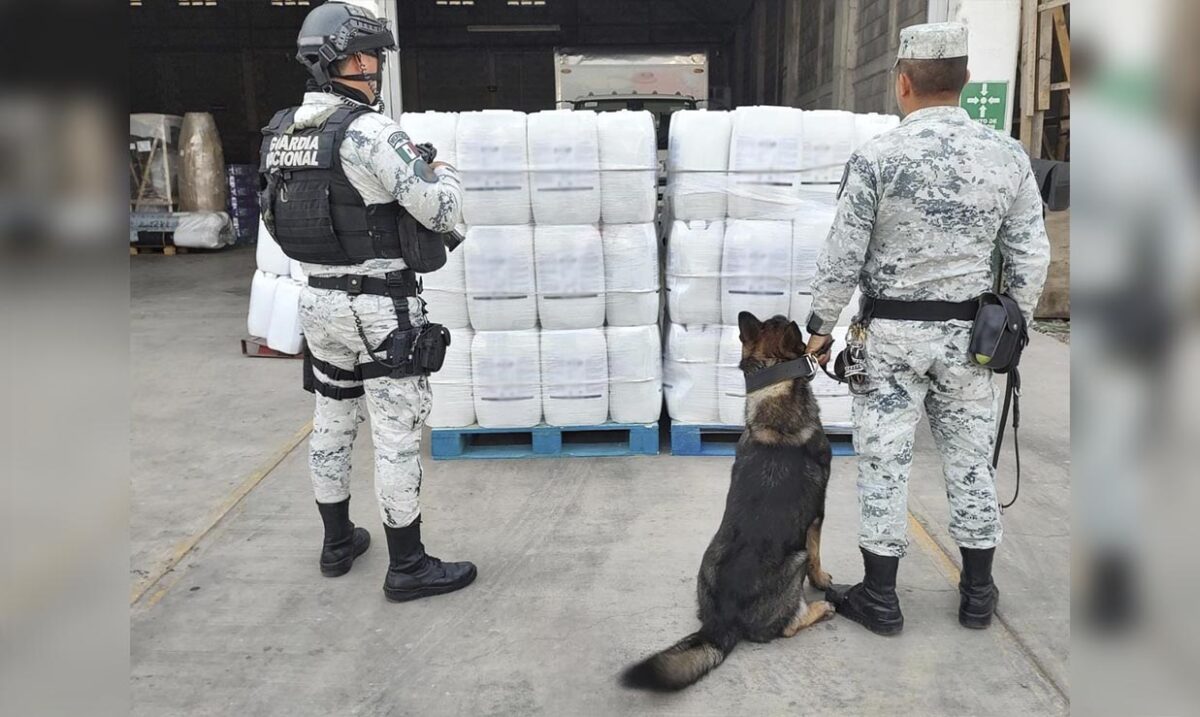Elementos operativos de la Guardia Nacional, auxiliados con binomios caninos, realizaron un operativo en centros de distribución de paquetería como parte de las acciones para combatir el trasiego de drogas.