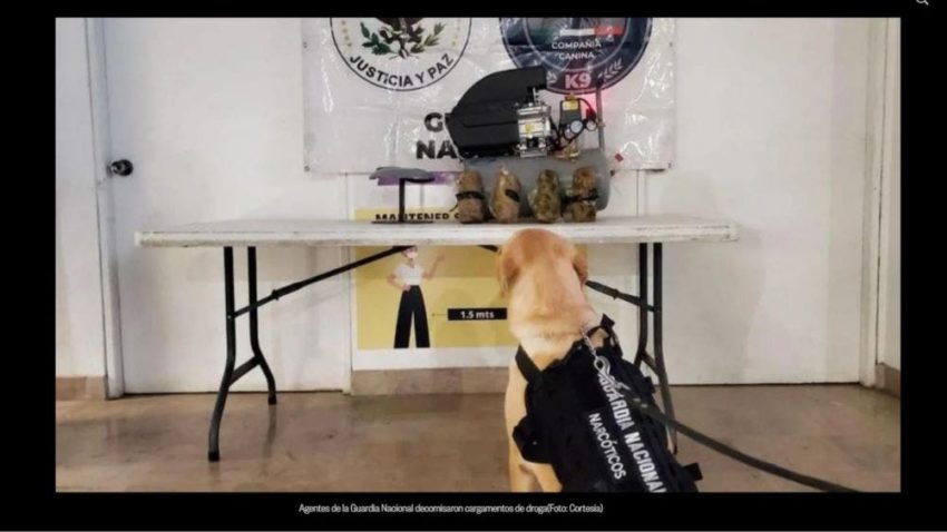 Pero durante la revisión, uno de los perros entrenados actuó de manera diferente al olfatear un paquete que tenía como destino la ciudad de Tijuana, Baja California.