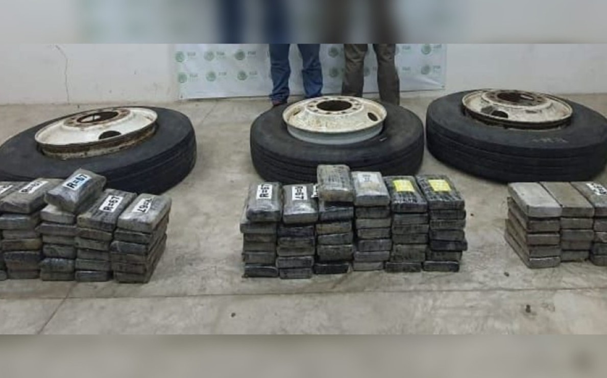 Decomisan 100 kilos de cocaína en llantas de un tractocamión