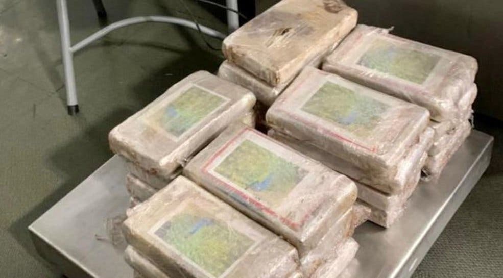 De acuerdo con el reporte oficial, se trata de 25 paquetes envueltos en plástico con la droga procedente de Bogotá, Colombia, los cuales fueron detectados con rayos X.