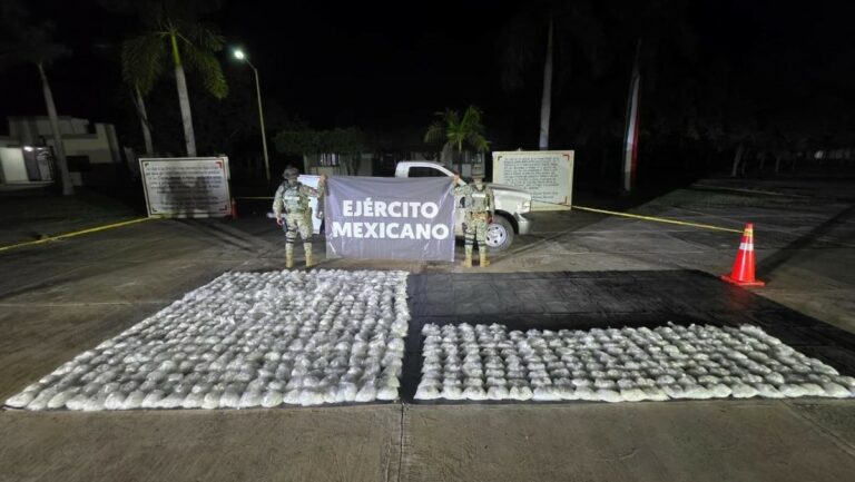Un operativo conjunto del Ejército Mexicano y la Guardia Nacional en el municipio de El Fuerte, Sinaloa, resultó en el aseguramiento de al menos 300 kilogramos de metanfetamina.