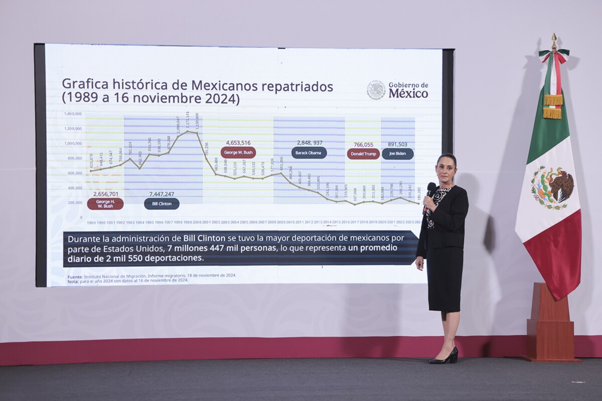 En tanto, la presidenta Claudia Sheinbaum explicó que la disminución en las cifras de migración hacia la frontera norte es perceptible a partir de la implementación del mecanismo integral del expresidente Andrés Manuel López Obrador, junto con la administración del exmandatario de Estados Unidos, Joe Biden.