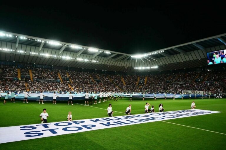 La UEFA utilizó el contexto de la final de la Supercopa de Europa, celebrada en el estadio Friuli de Údine, en Italia, para lanzar un mensaje contra Israel, pero sin mencionar al país. Un acto en el que participaron niños refugiados palestinos para la entrega de medallas junto al presidente del organismo continental, Aleksander Ceferin.