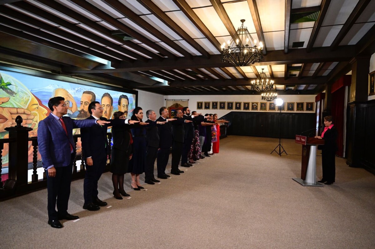 Así rindieron protesta del cargo Horacio Duarte Olivares, como secretario general de Gobierno; Macarena Montoya Olvera, como secretaria de Salud; Norberto Morales Poblete, titular de la Secretaría del Trabajo; Miguel Ángel Hernández Espejel, secretario de Educación, y Juan Carlos González Romero, titular de la Secretaría del Bienestar.