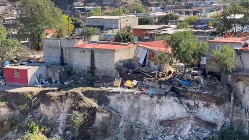 Según informe de las autoridades, por una presunta fuga de agua que tenía varias semanas y la humedad causada por las recientes lluvias, un total de 40 viviendas se derrumbaron en la colonia Tres de Octubre en Tijuana, Baja California.