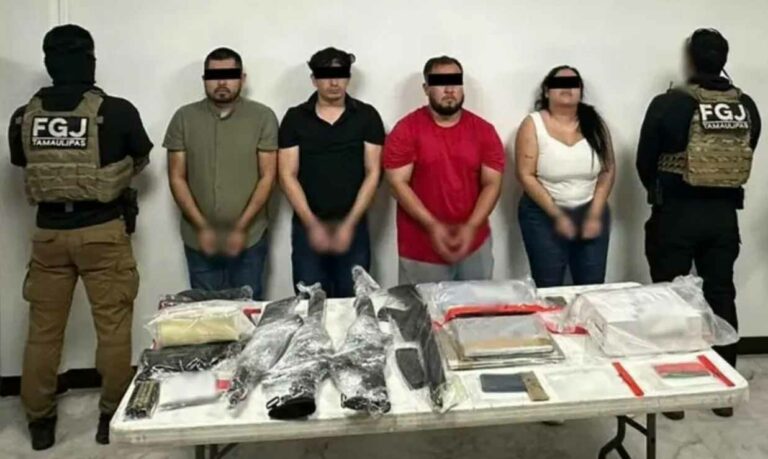 Los detenidos fueron identificados como Juana María “N”, alias La Conta; Guillermo Gamaliel “N”; Aldri Jhair “N” y Alán Alexis “N”. De acuerdo con las investigaciones iniciales, La Conta sería presuntamente la encargada de coordinar operaciones de tráfico de armas y lavado de dinero dentro de la estructura del Cártel del Golfo.