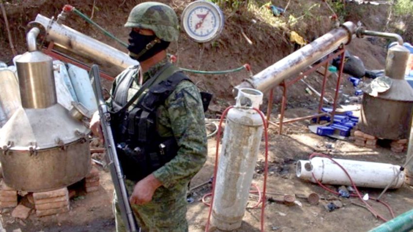 Descubre SEDENA narcolaboratorio en el “Triángulo Dorado”.- El narco no para de trabajar ni de producir, así lo comprobó el Ejército Mexicano el día de ayer, pues mientras realizaban sus labores de patrullaje, localizaron un laboratorio clandestino para la preparación de droga sintética en la mítica zona conocida como el “Triángulo Dorado”, una región donde la familia y socios del “Chapo” Guzman siguen teniendo un gran dominio.