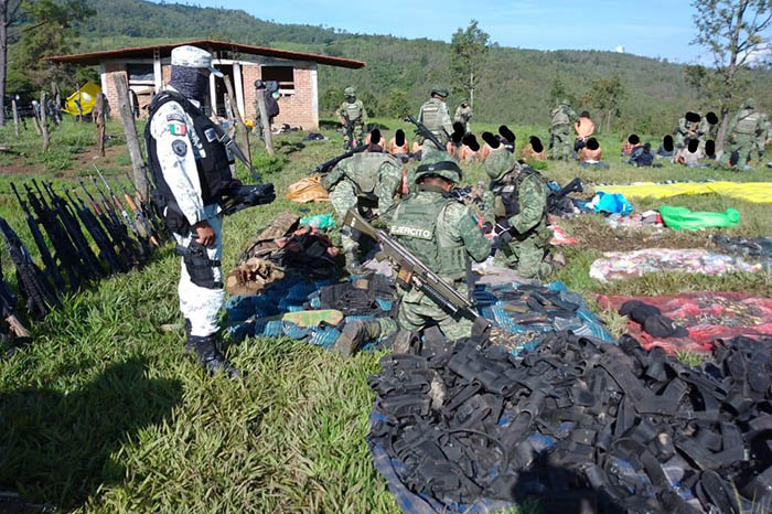 37 presuntos sicarios detenidos, un arsenal de 40 armas de fuego, cientos de cartuchos útiles y un vehículo decomisados, fue el saldo de un operativo realizado por el Ejército Mexicano y fuerzas policiales en Michoacan donde desmantelaron un “narcocampamento”.
