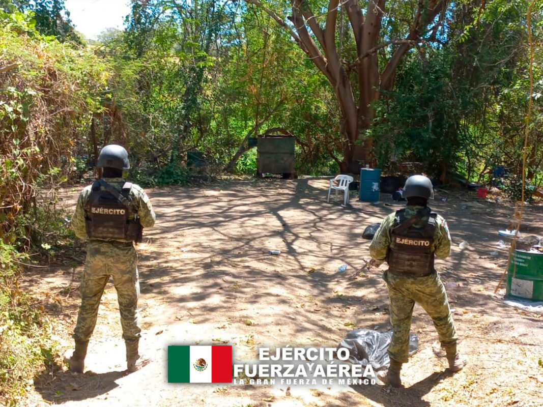 Al arribar al área de operaciones ubicada a inmediaciones del poblado Tachinolpa, el personal del Ejército Mexicano identificó los predios en los que según la información obtenida, se habían establecido dos laboratorios clandestinos.