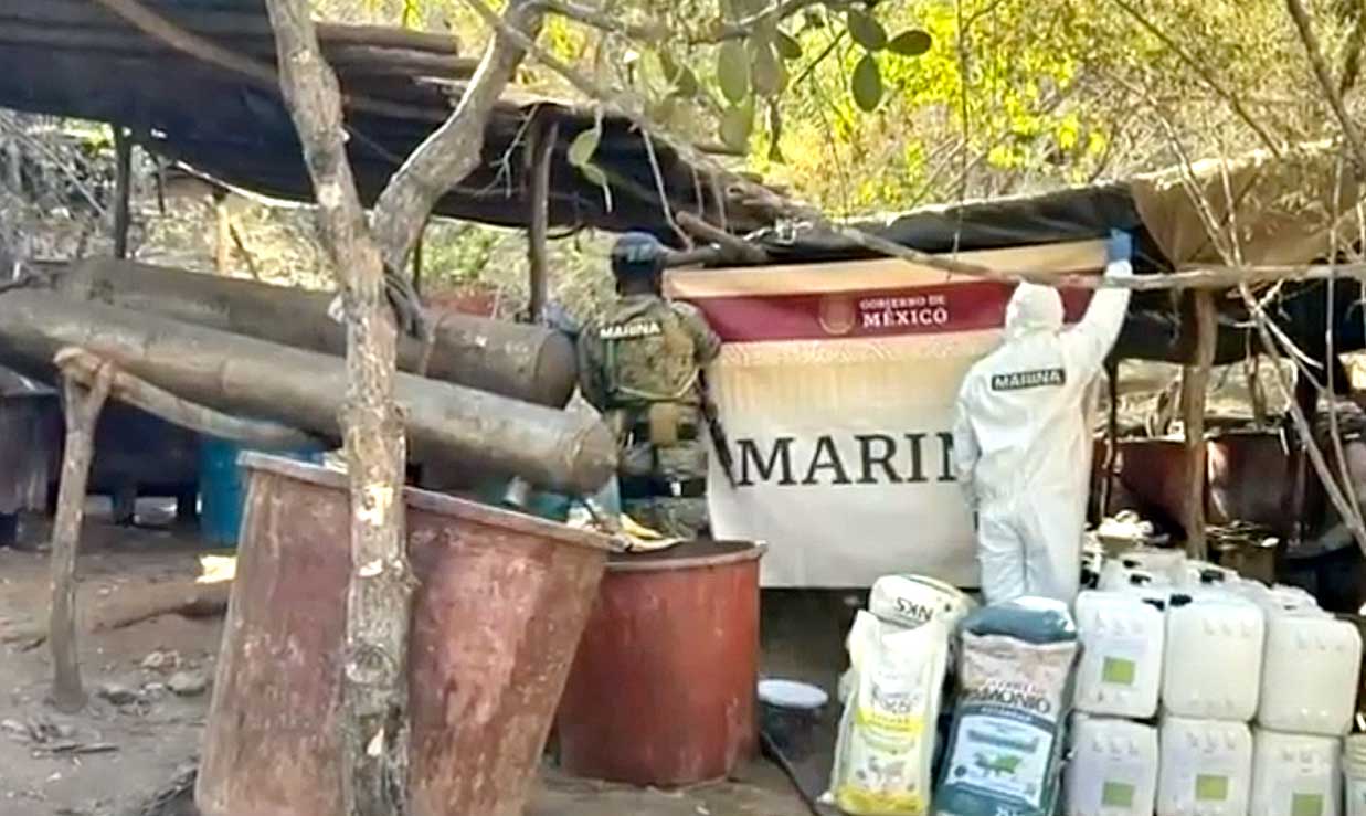 En un operativo de erradicación, la Secretaría de Marina (Semar) desmanteló un laboratorio clandestino utilizado por grupos del crimen organizado para la producción de drogas sintéticas en el municipio de Álamos, Sonora.