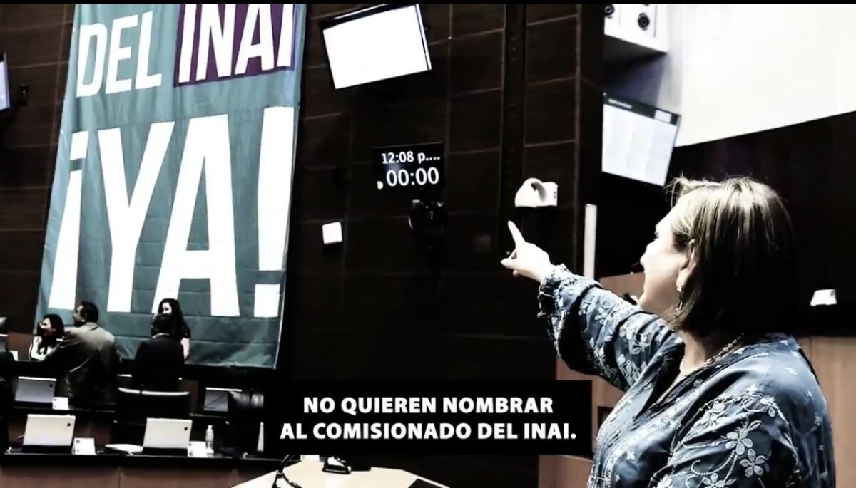 Pero no sólo eso: el 18 de abril de 2023, Gálvez Ruiz colgó mantas en el Senado con las frases: “No le saquen a rendir cuentas” y “A qué le tienen miedo en Morena”, acompañadas con el hashtag ‘Transparencia Ya’, con las que exigía que se nombraran a los comisionados faltantes. Y 10 días después, el 28 de abril del año pasado, incluso participó junto con otros legisladores del PAN, PRI y PRD –como Gustavo Madero– en la llamada “piyamada” por la defensa del Inai, que consistió en la “toma” del Senado.