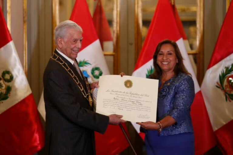 “Imagínense, la presidenta de Perú, entregándole un pergamino a Vargas Losa ¡Vargas Llosa! Que va a recibir un reconocimiento a su país de quien fue impuesta por una élite autoritaria, que ha entregado los recursos naturales de su país a extranjeros, que tiene injustamente en la cárcel al presidente que eligieron los peruanos (Pedro Castillo)”, señaló el mandatario mexicano esta mañana en su conferencia de prensa.