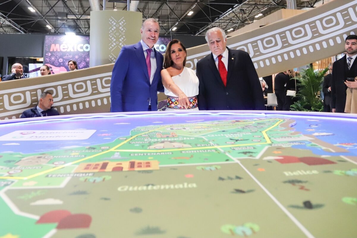 La gobernadora Mara Lezama Espinosa participó junto a la ministra de Industria, Comercio y Turismo de España, Reyes Maroto; el secretario de Turismo Federal, Miguel Torruco Marqués y el Embajador de México en España, Quirino Ordaz, en la inauguración del Pabellón de México, el más grande con mil 111 metros cuadrados, 105 booths, espacios para la comitiva integrada por alrededor de 270 participantes, entre empresarios de todo el mundo, representantes de 17 estados, prestadores de servicios turísticos, que presentarán sus productos y paquetes ante los compradores en esta feria turística.