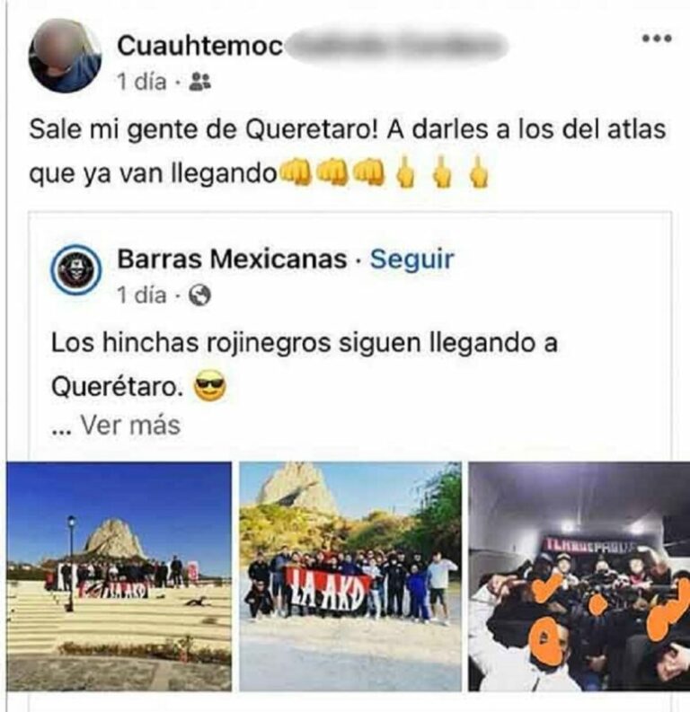 Así, Cuauhtémoc “N” escribió: “Sale mi gente de Querétaro! A darles a los del Atlas que ya van llegando”, acompañado de unos emojis.