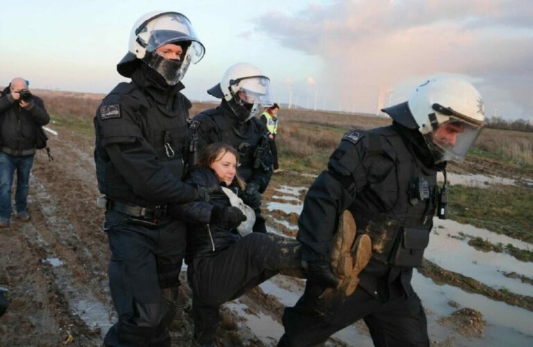 “El grupo [de manifestantes] está detenido”, indicó una portavoz de la policía. En unas fotos difundidas por AFP, se ve a la activista siendo evacuada por las fuerzas de seguridad cerca del pueblo de Lützerath.