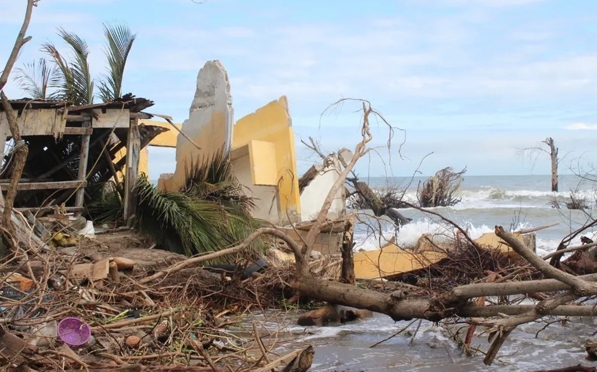Para enfrentar esta crisis en esa zona costera, la población habilitó algunos refugios improvisados hechos con láminas que se pudieron rescatar cuando las casas fueron engullidas por el mar.