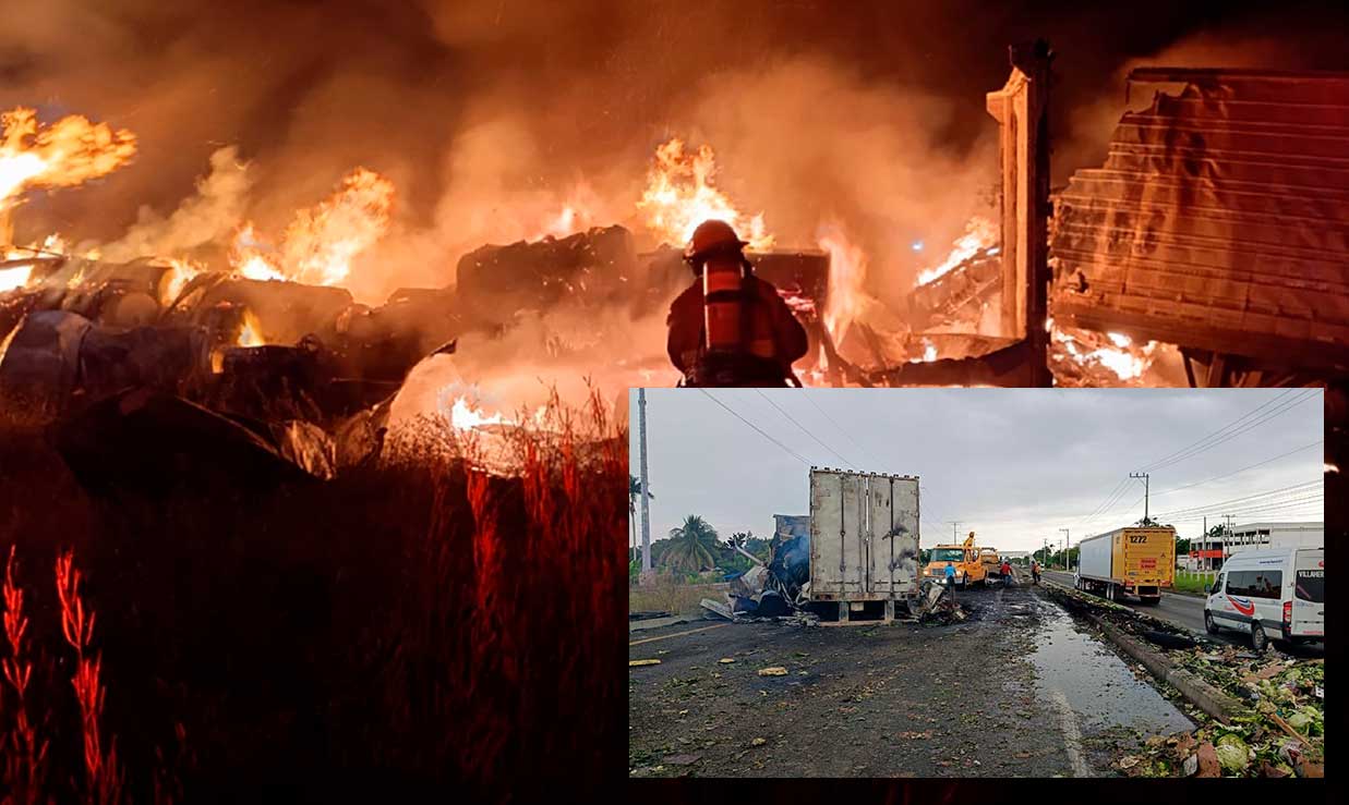 Dos tráileres protagonizaron un impactante accidente la madrugada de este jueves en la carretera Villahermosa-Cárdenas al chocar y estallar en llamas. El siniestro dejó como saldo a uno de los conductores lesionados, el cual tuvo que ser hospitalizado de urgencia.