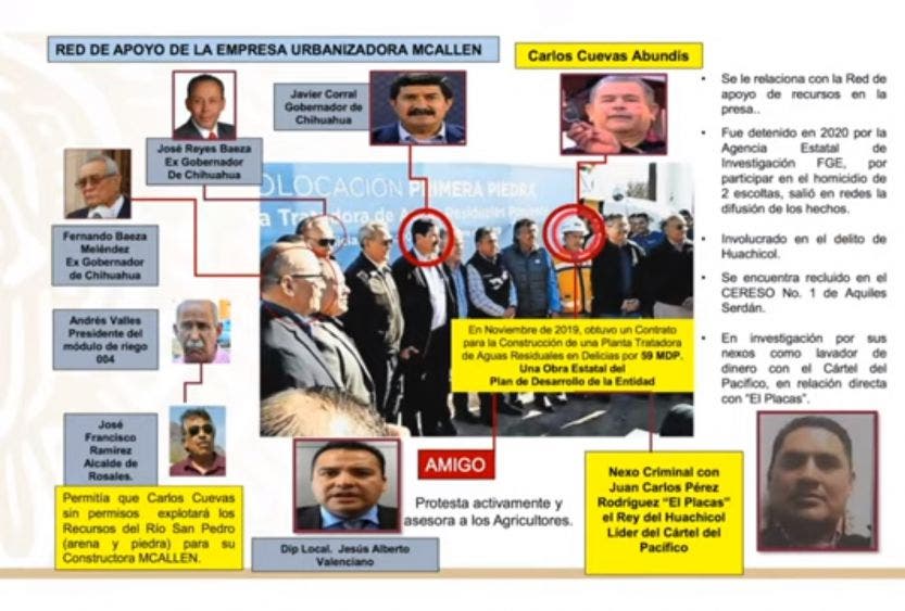Dijo que en un evento de noviembre de 2019, cuando se echó a andar la planta de tratamiento de agua de Delicias, además de Javier Corral y los exgobernadores de Chihuahua José Reyes Baeza y Fernando Baeza Meléndez, estuvo presente Carlos Cuevas Abundis, detenido por el asesinato de dos de sus escoltas.