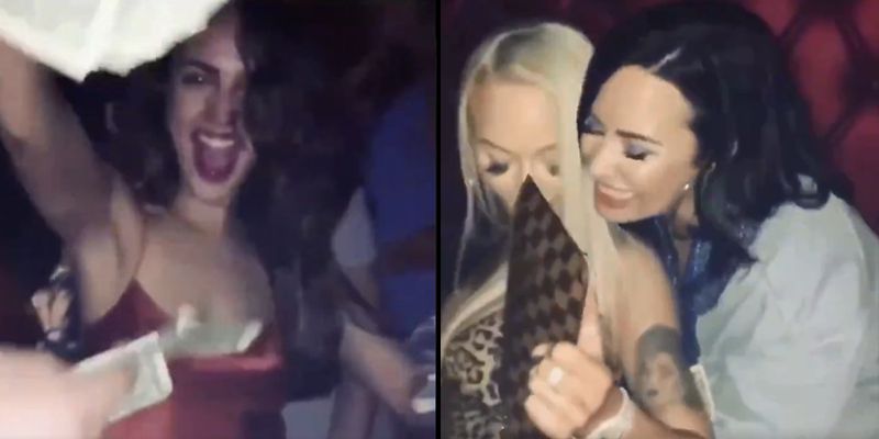 Eiza González y Demi Lovato bailan con una stripper en centro nocturno.- En redes sociales circula un video en el que aparecen la cantante y la actriz lanzándole billetes a una bailarina.