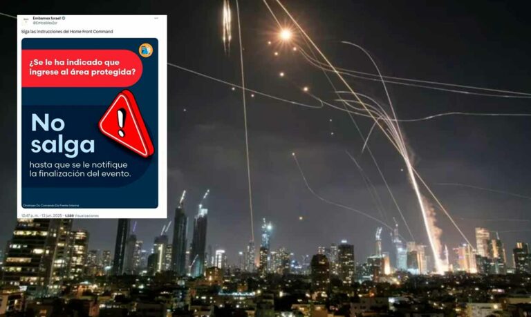 En un contexto marcado por el sonido constante de sirenas de ataque aéreo, principalmente en Tel Aviv, y la amenaza de nuevos bombardeos, la misión diplomática solicitó a los ciudadanos que permanezcan en resguardo en sus hogares hasta nuevo aviso.