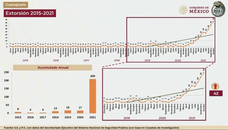 En tanto, el gobernador Diego Sinhue Rodríguez Vallejo, explicó que si bien la tendencia de asesinatos se ha reducido, mil menos que el año anterior, todavía no es menor al nivel de 2018. Igualmente destacó un mayor decomiso de armas.
