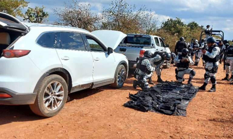 La dependencia militar dependiente de la Secretaría de la Defensa Nacional (Sedena), a través de un comunicado detalló que personal de la Guardia Nacional (GN) detuvo a seis personas, y dentro de dos vehículos aseguró armas largas, cargadores, cartuchos útiles, una granada de fragmentación y chalecos balísticos.
