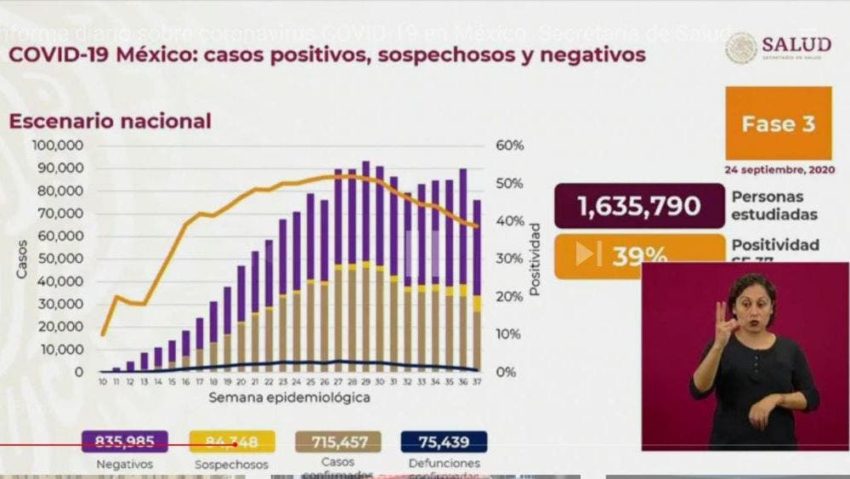 Según los últimos reportes de contagio por Covid 19 en el país, el porcentaje de positividad ha tenido un ligero incremento y se ha posicionado en un 39%, señaló Hugo López-Gatell, subsecretario de Prevención y Promoción a la Salud.