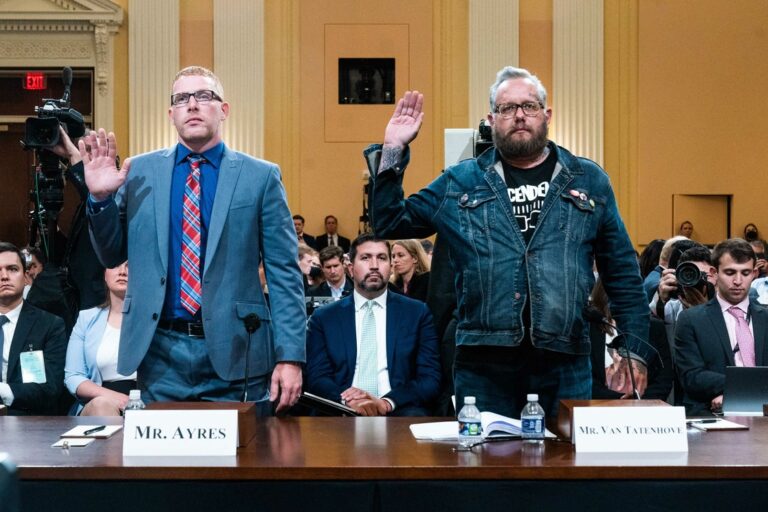 En la audiencia de ayer también se presentaron dos testigos en vivo. Jason Van Tantenhove, quien fue vocero de los Oath Keepers y hoy condena a su vieja agrupación, a la describió como “una milicia peligrosa”. Advirtió que “es por pura suerte que no ha habido mucha más sangre, porque ahí está el potencial para eso… temo que sucederá en la próxima elección… tuvimos un presidente que instó a una guerra civil… qué ocurrirá si es electo otra vez si no logramos que esta gente rinda cuentas”.