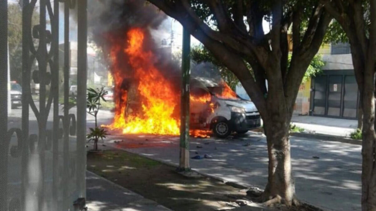 Sin embargo, cuanto estos intentaban escapar y para evitar la persecución, los delincuentes que no fueron heridos prendieron fuego sobre avenida Río Nilo a una camioneta repartidora tipo van; la cual se quemó en su totalidad; pese a la llegada del personal de bomberos.