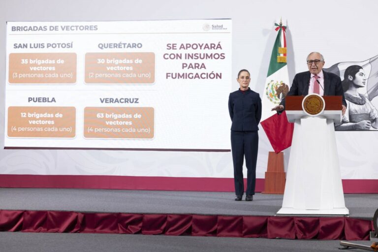 En la mañanera del pueblo, detalló que en San Luis Potosí se tienen 35 brigadas de vectores; en Querétaro; 30; Puebla, 12; y Veracruz, 63.