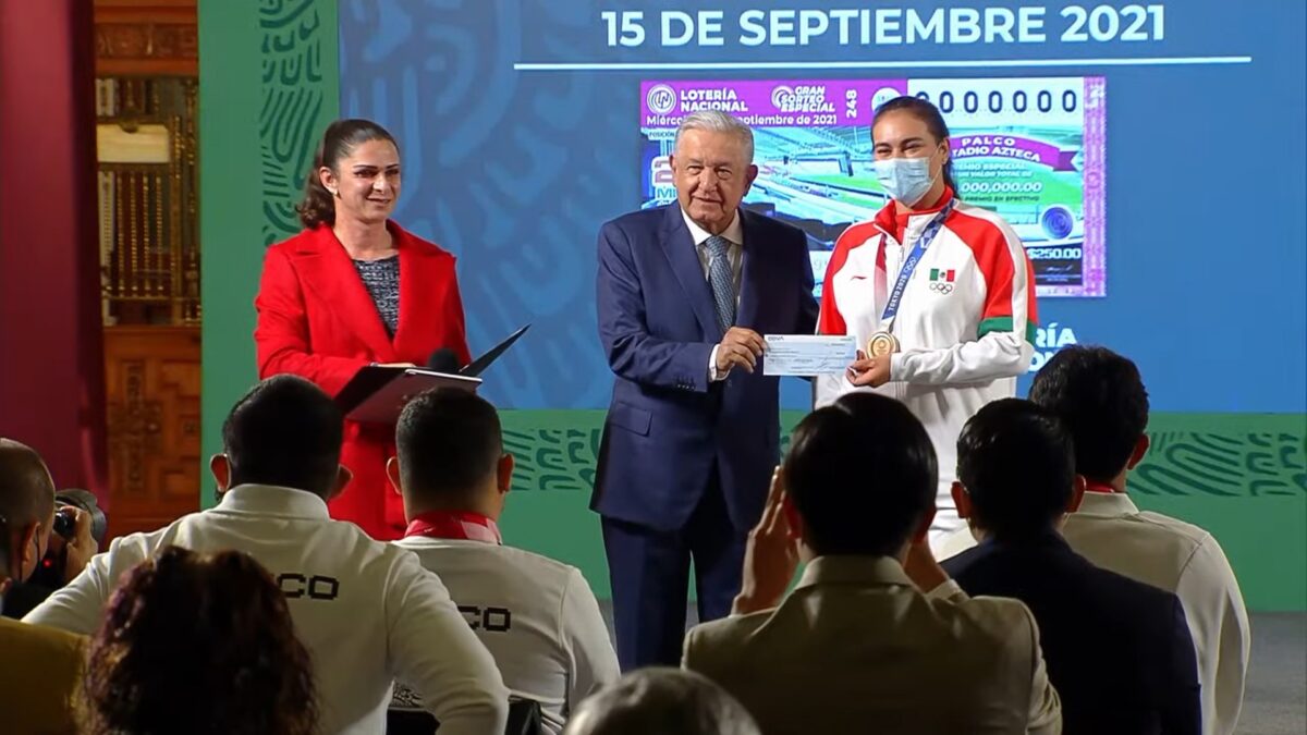 El presidente Andrés Manuel López Obrador entregó hoy estímulos a deportistas que participaron en los Juegos Olímpicos en Tokio 2020.