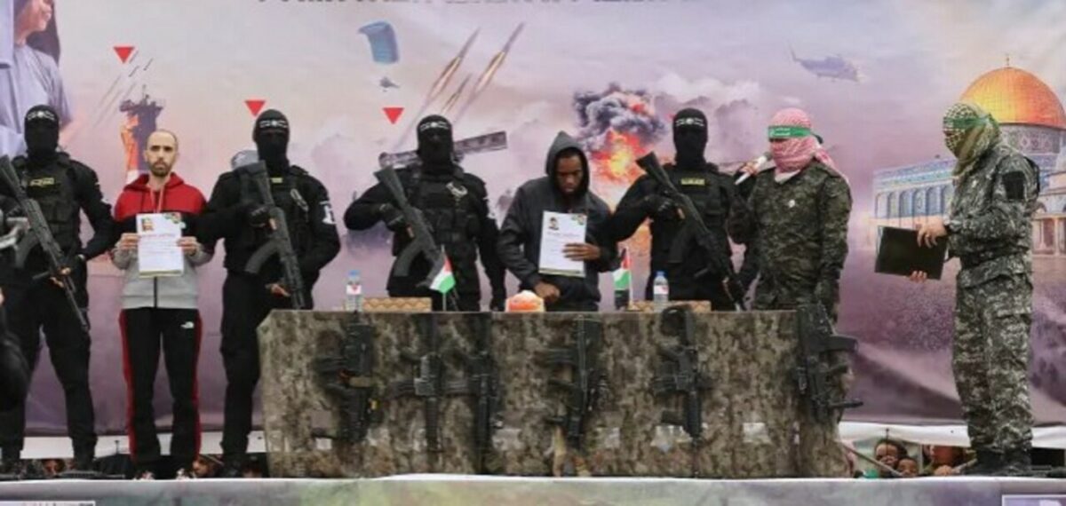 Cinco de los cautivos fueron entregados en ceremonias escenificadas que la Cruz Roja e Israel han condenado en el pasado: los sacaron a sendos escenarios combatientes de Hamás armados y enmascarados delante de cientos de palestinos antes de ser trasladados a vehículos de la Cruz Roja.