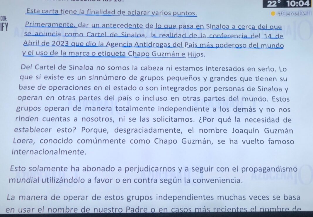 En la carta, Los Chapitos hablan sobre los señalamientos de liderar el cártel de Sinaloa, presuntos grupos criminales que afirman pertenecer a su organización y la supuesta desinformación en su contra.