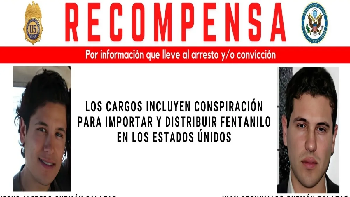 A través de la Administración para el Control de Drogas (DEA por sus siglas en inglés), el gobierno estadounidense elevó el monto por la captura de Iván Archivaldo y Jesús Alfredo Guzmán Salazar, a quienes acusa de tráfico de fentanilo, de armas y lavado de dinero.