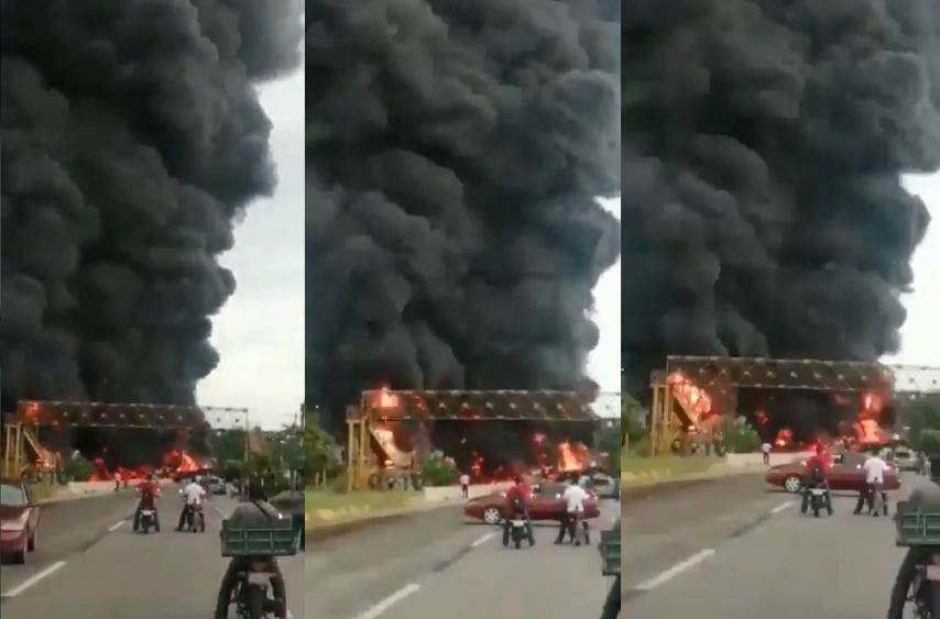 “Accidente de una pipa con combustible, en la ranchería La Raya, carretera Comalcalco-Paraíso, la pipa explotó, está controlado el incendio.