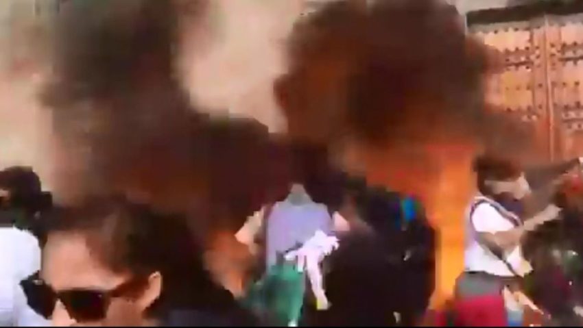Un grupo de personas encapuchadas lanzó bombas molotov a las Puertas de Palacio Nacional, ubicado en la plancha del Zócalo. Esto provocó un conato de incendio en la zona que fue atendido rápidamente por servicios de emergencia.