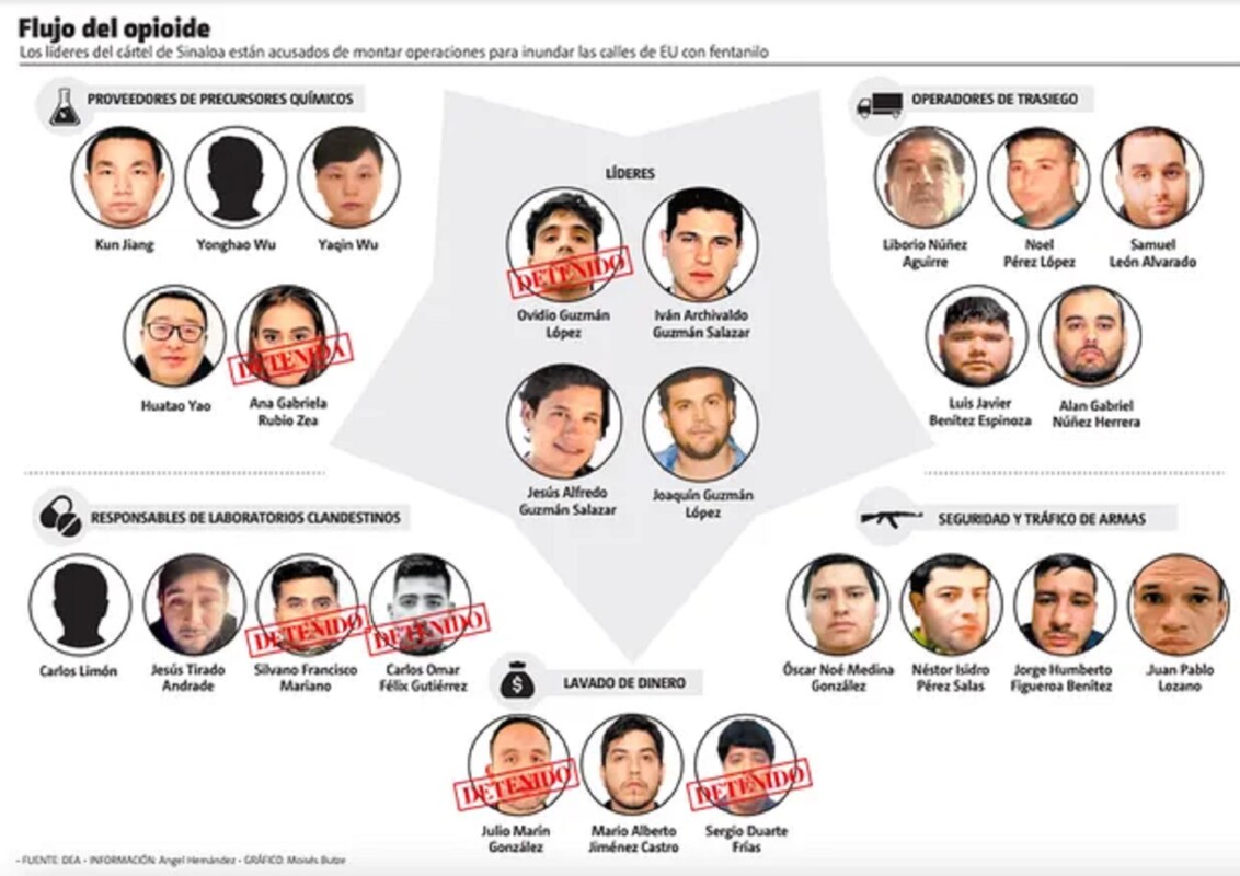 “Los sancionados hoy son parte de una red del cártel de Sinaloa supervisada por Los Chapitos y responsable de una parte significativa del tráfico ilícito de fentanilo y otras drogas mortales hacia los Estados Unidos”, destacó el gobierno estadounidense.