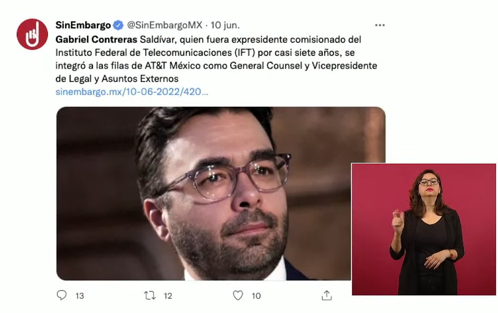 “Ah, este es Gabriel Contreras, expresidente comisionado del Instituto Federal de Telecomunicaciones, ahí está, pasa a una empresa en Estados Unidos de telecomunicaciones.