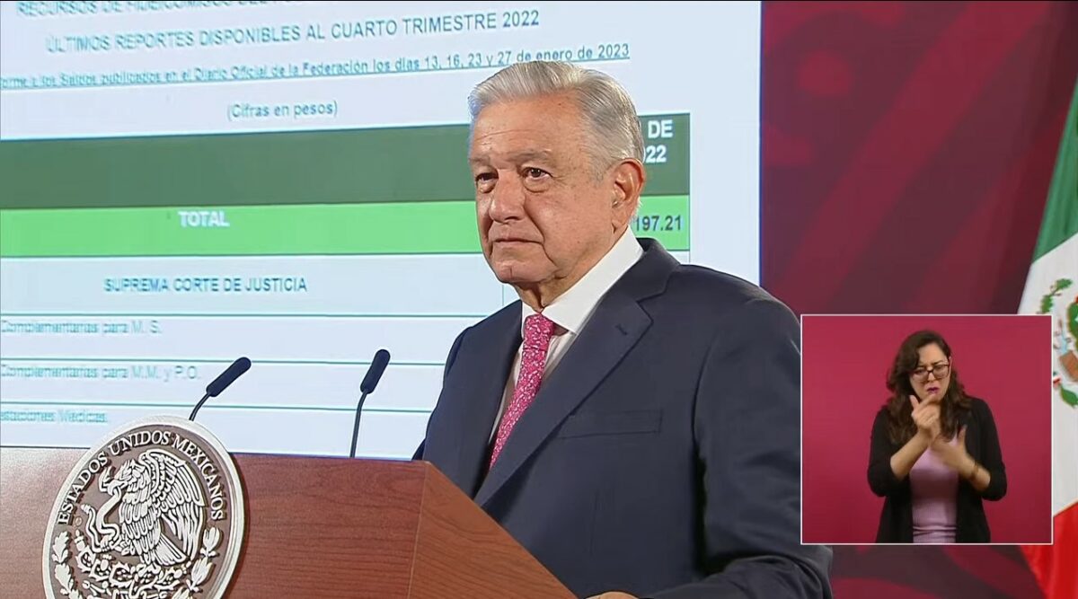 López Obrador hizo un desglose de los fondos con los que cuenta el Poder Judicial subrayando que solo en estas partidas tienen 40 veces más recursos que el presupuesto para la Presidencia de la República. Mencionó que de los 6 mil 99 millones de pesos de la SCJN poco más de 3 mil 500 millones de pesos se destinan a pensiones complementarios; mil 311 millones de pesos se acumulan como “remanentes presupuestales”, es decir, dijo el presidente, lo que no se gastan no lo devuelven a la Hacienda pública, sino que se lo quedan.