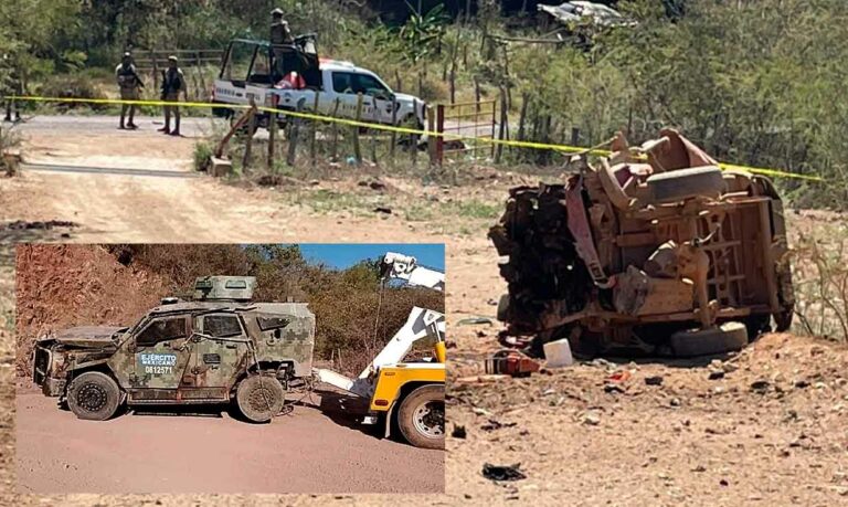 La potencia del estallido fue tal que destruyó completamente el vehículo blindado en el que se desplazaban los soldados. Entre las víctimas se encuentran elementos del Ejército Mexicano y de la Guardia Nacional.
