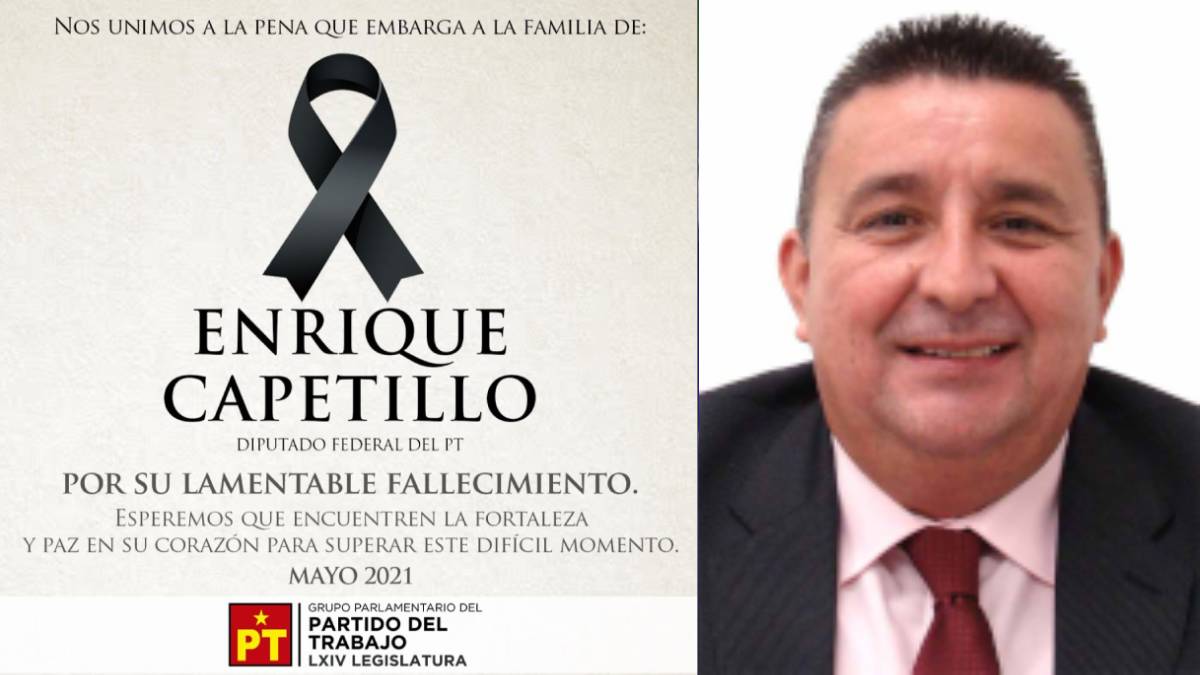 A los 55 años de edad, falleció el diputado federal del Partido del Trabajo (PT), Enrique Capetillo González, de acuerdo con fuentes de la bancada, esto se debió a un paro cardiaco fulminante.