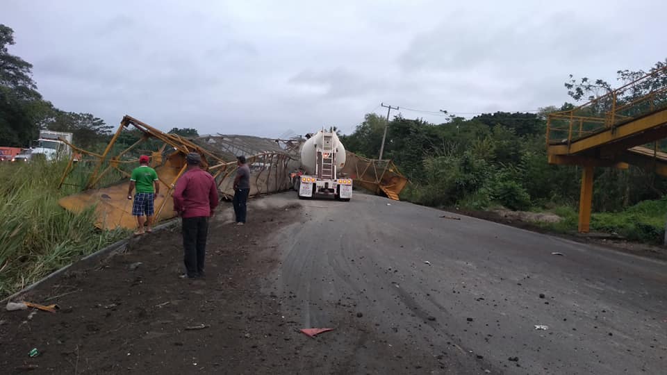 De acuerdo con información del Instituto de Protección Civil de Tabasco, los hechos se suscitaron a la altura de la comunidad de Huapacal segunda sección, en donde un tráiler tipo góndola derribó un puente peatonal de la zona, tras chocar contra la base de la estructura metálica, lo que ocasionó que el chofer de la pesada unidad perdiera el control y se volcara, cayendo sobre un auto particular.