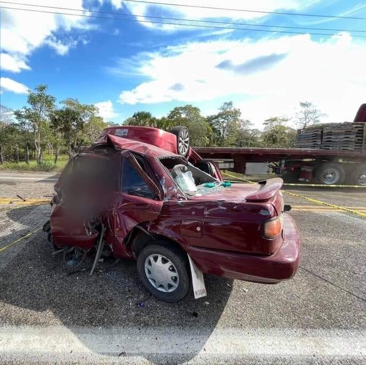 Entre los ocupantes fallecidos del Nissan Tsuru, color, rojo, placas WLA-122A de Tabasco, se logró identificar a Jesús Adrián May Hernández, Leonel May May, Yaremi Lizeth Santiago Cimá, María de los Ángeles Cimá Pool y Leonel May Hernández.