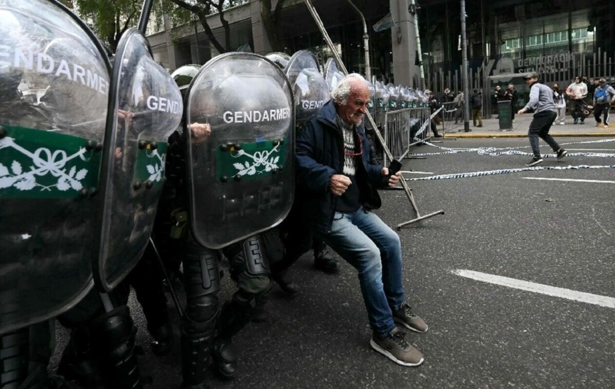 En tanto, en la capital de la provincia de Santa Fe, este jueves sucedió que trabajadores, docentes lograron entrar a la legislatura para impedir que se votara una reforma jubilatoria, como pidió el gobernador Maximiliano Pullaro, un radical aliado a Milei, que quita no sólo los derechos adquiridos desde 2005, sino también aumentaba la edad de retiro de las mujeres a 65 años.