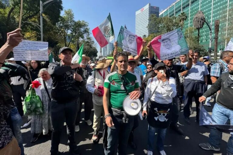 Los manifestantes, quienes lanzaron consignas en contra de Morena, solicitaron a los elementos de seguridad avanzar y seguir su marcha hasta el Zócalo.