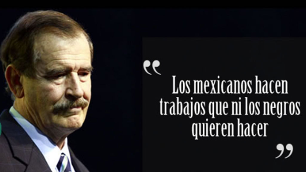 Quien a pesar de tener un vasto repertorio de frases clasistas y desafortunadas como eso de denominar “autista” al Presidente Andrés Manuel López Obrador o llamar a sus seguidores “perrada”, sin duda, la frase más racista la pronunció en 2005 siendo mandatario cuando se refirió a los migrantes mexicanos en Estados Unidos, al expresar: