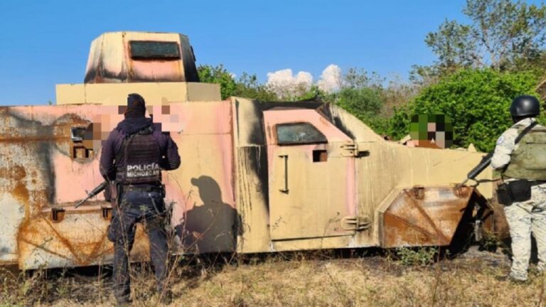 De igual manera, al inspeccionar una zona serrana de la comunidad denominada Rancho El Montoso, se localizó el segundo vehículo con blindaje artesanal y un campamento improvisado. Una vez realizadas las labores correspondientes, las dos unidades vehiculares, así como el campamento ilícito fueron destruidos, para posteriormente dar vista a la autoridad competente a efecto de llevar a cabo las diligencias correspondientes.