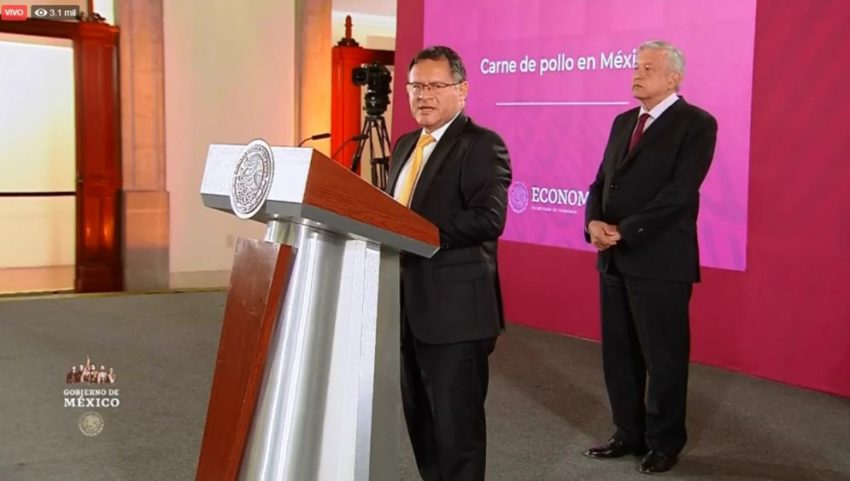 “La Secretaría de Economía hace un estudio permanente y detecta condiciones de abasto suficiente en materia de carne de pollo para atender las necesidades del consumo nacional. El segundo mensaje que queremos transmitir es que los precios de la carne de pollo muestran cierta estabilidad e incluso tienen un comportamiento ligeramente mejor que la inflación.